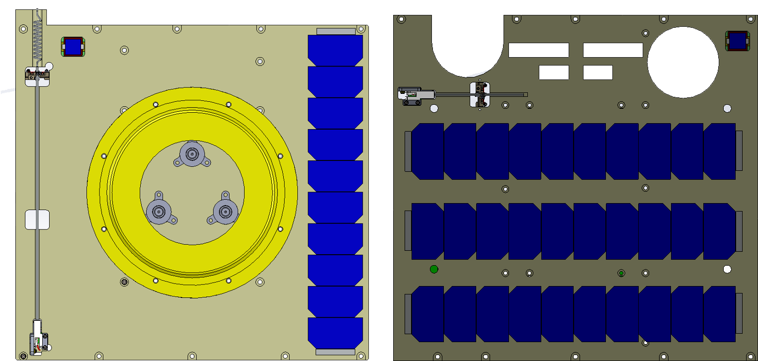 The placement of the amateur radio antennas was carefully considered in the structure due to its size and the need for an omnidirectional pattern. There are a total of two amateur radio antennas - one for VHF and one for UHF band. Figure 3 shows the placement on the antennas in the satellite panels.